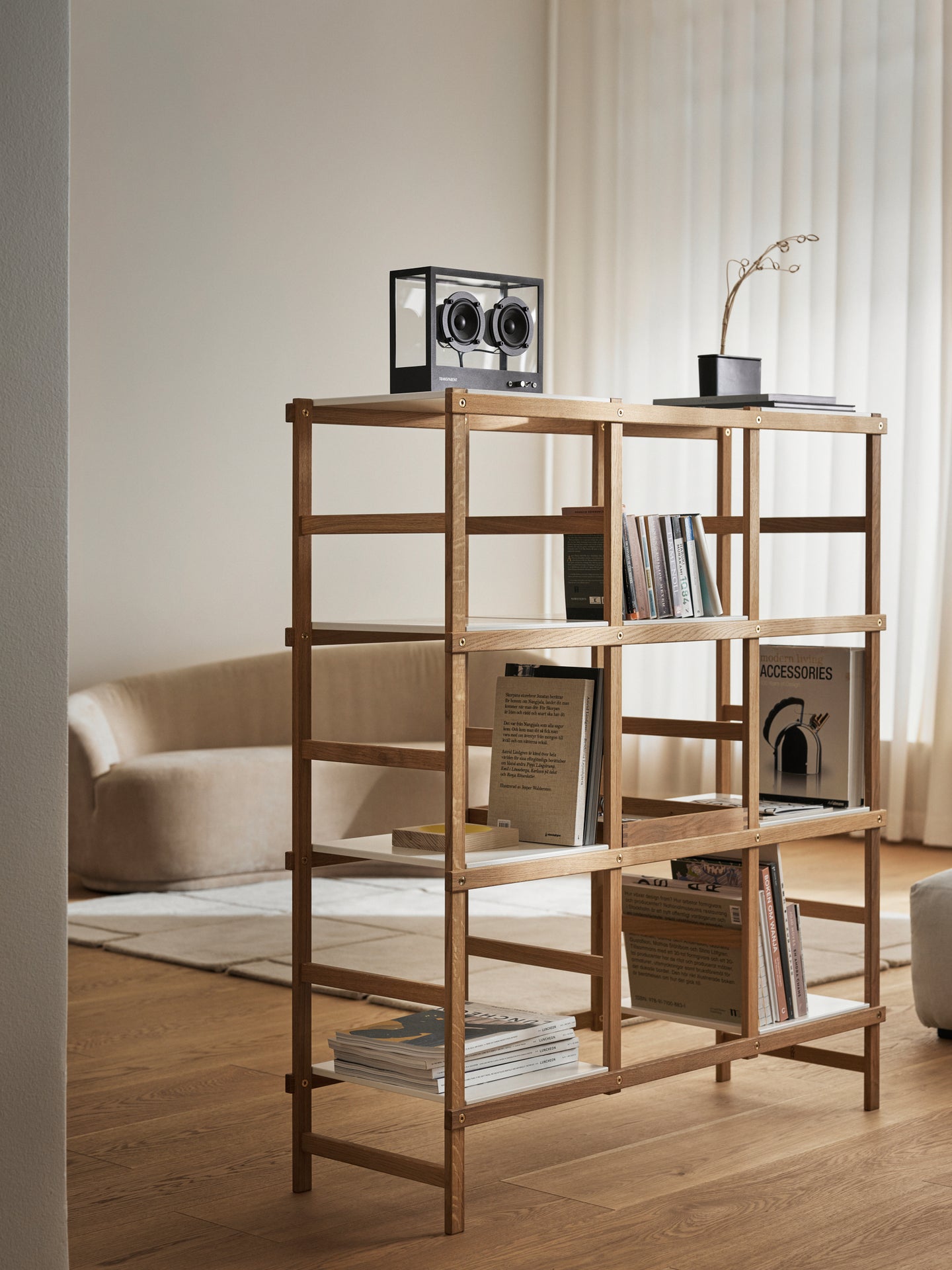 The perfect furniture system to display rather than storage. The shelves are easily moved around to create your own unique framing.