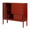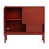 A minimalist yet unique expressive furniture piece that can stand alone or along a wall. A refined storage cabinet crafted with a distinctive design poetry. The exact form is underlined by the exposed grain of the oak veneer set in horisontal and vertical patterned shapes. The geometrically exposed slits does away with any handles and reveals the hidden gems inside.