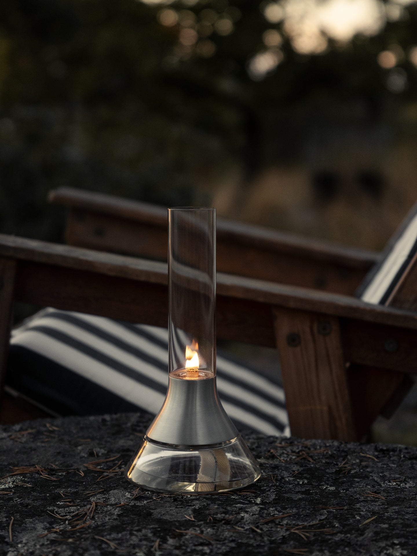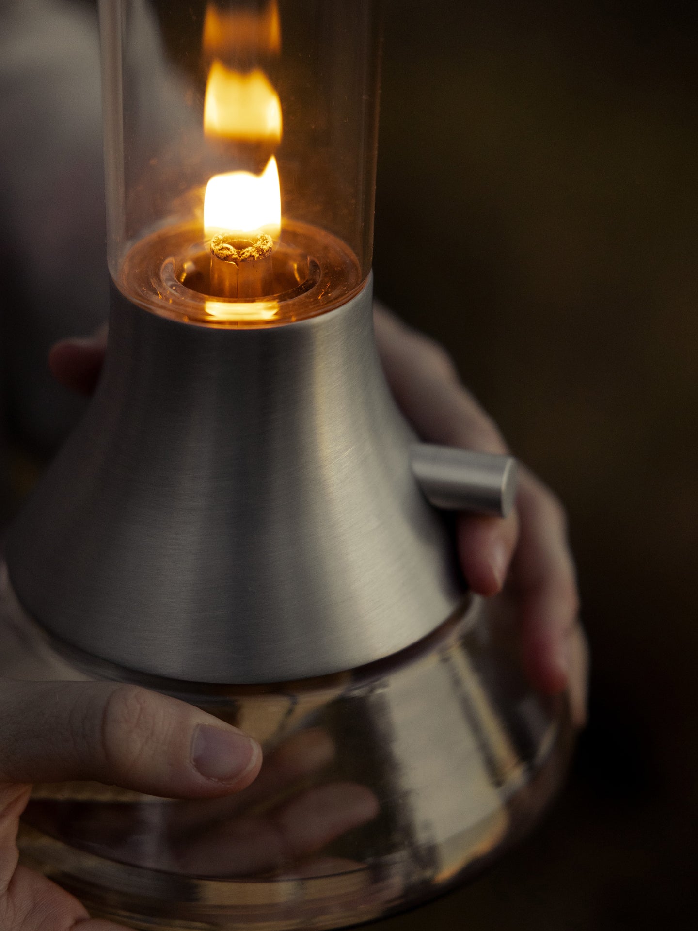 A modern take on the classic kerosene lamp. Fyr Kerosene Lamp will give a gentle warm yet clear light both indoors and outdoors, if standing in a not to windy environment.