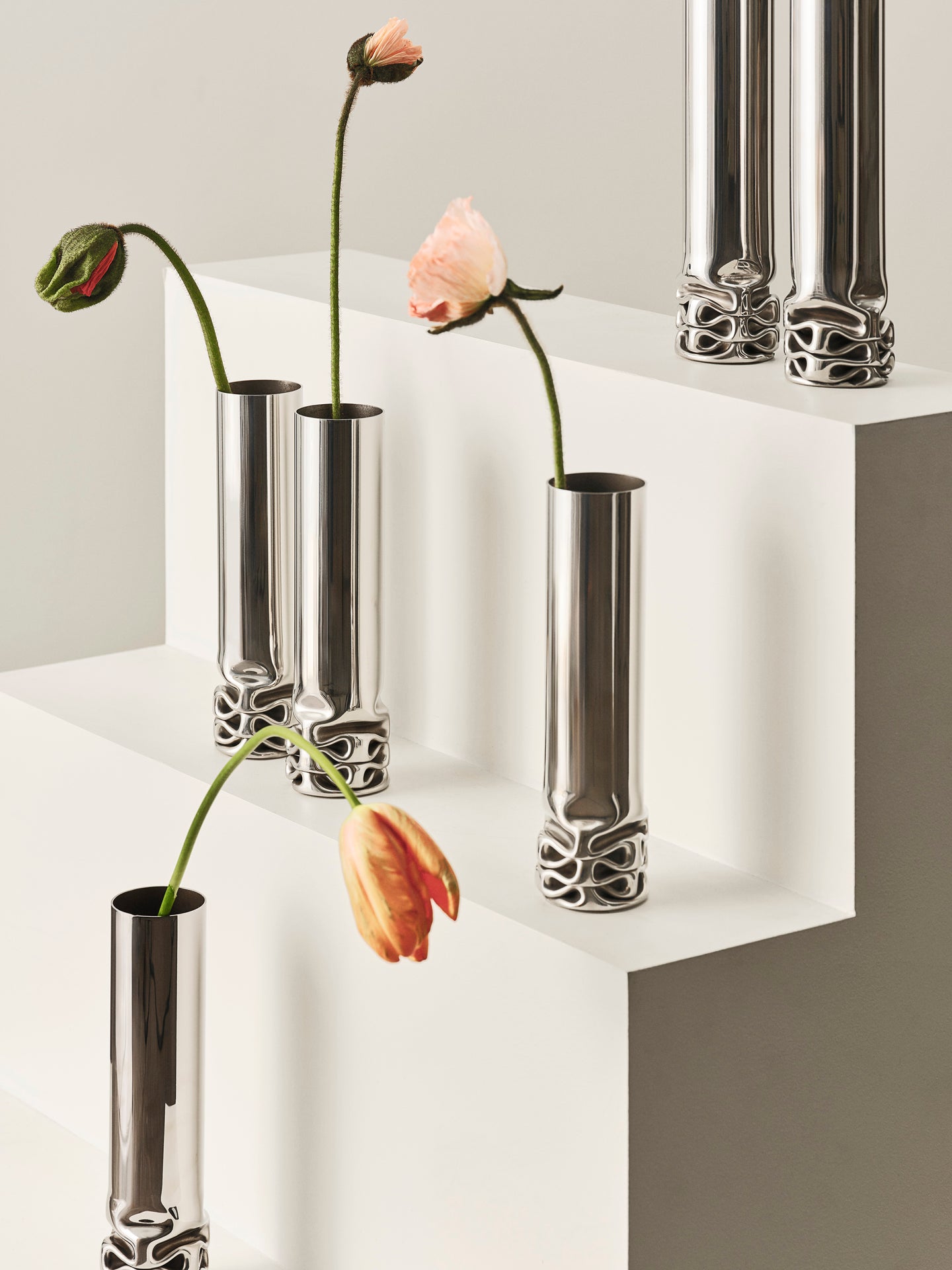 Initially produced in Isa’s studio, the Hydraulic Vase is now reaching a broader audience through Design House Stockholm. Though formally trained as a designer, Isa identifies as an artist. Her work often explores the tension between fragile and robust materials. “As an artist, you have greater aesthetic freedom than as a designer,” she says. “My goal is to present a sharp, precise visual language that challenges conventions of beauty, aggression, and identity.”