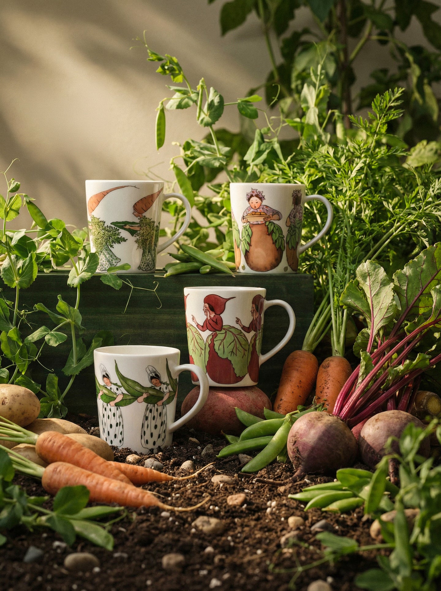 New Version - Mug with handle, 28cl. The beloved stories of Elsa Beskow have been interpreted by designer Catharina Kippel in a collection of mugs, bowls, and trays in various sizes.