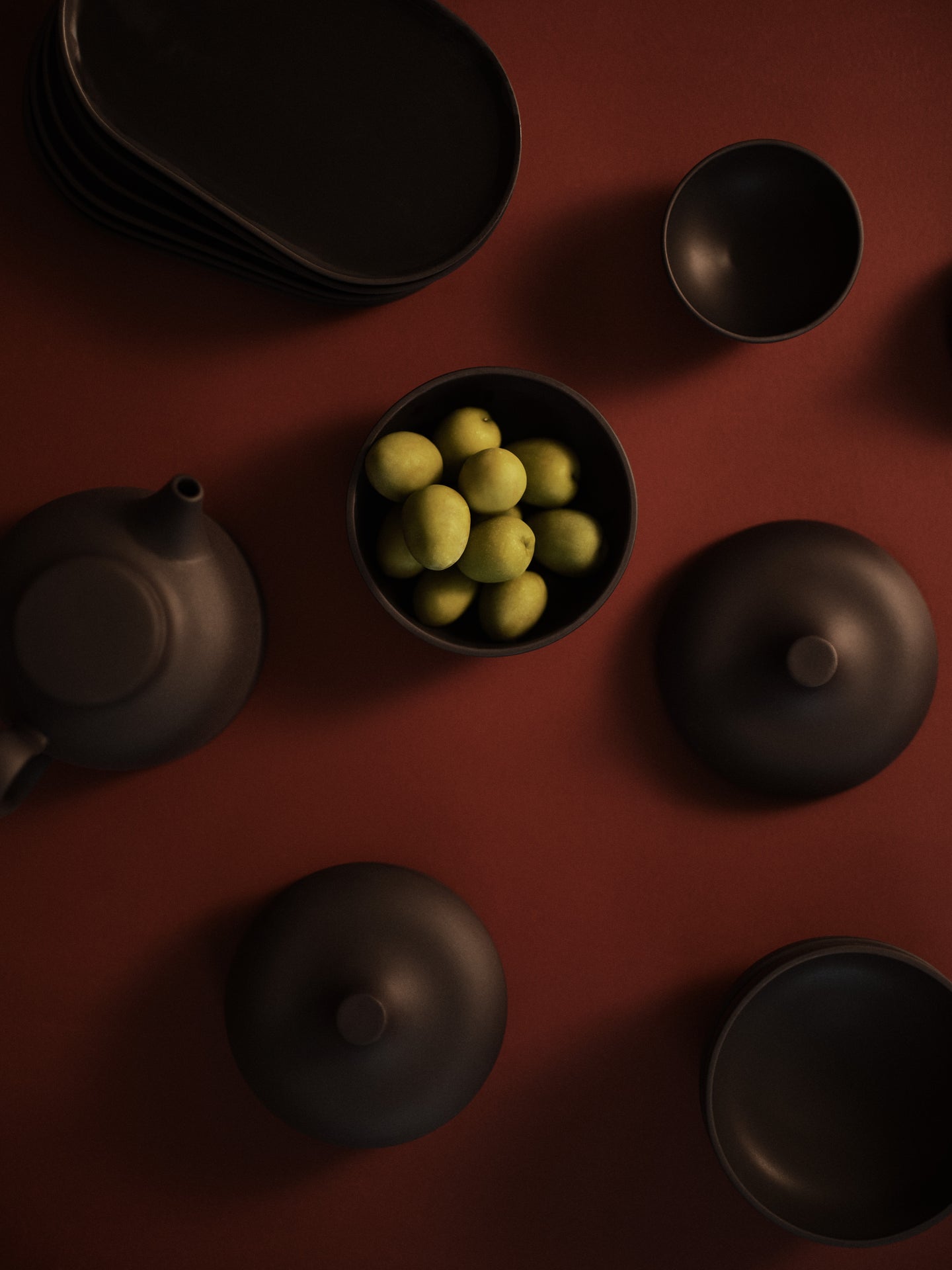 Lift the lid to present flavour and fragrances retained within. Glazed on the inside, raw but softly polished on the outside.