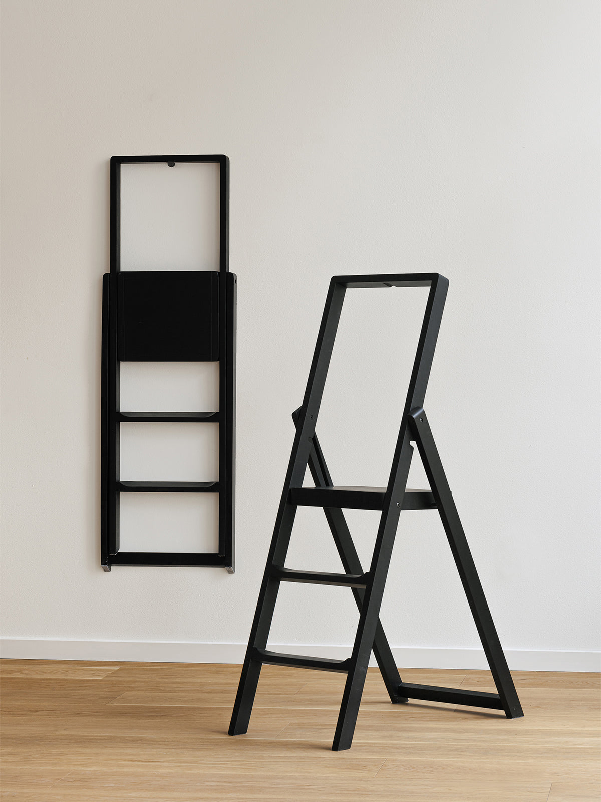 A step ladder beautiful enough to be displayed on the wall as a piece of decoration, rather than stored away in a dark closet.