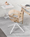 - Seat: Form pressed ash/oak veneer. Legs: Metal swivel base